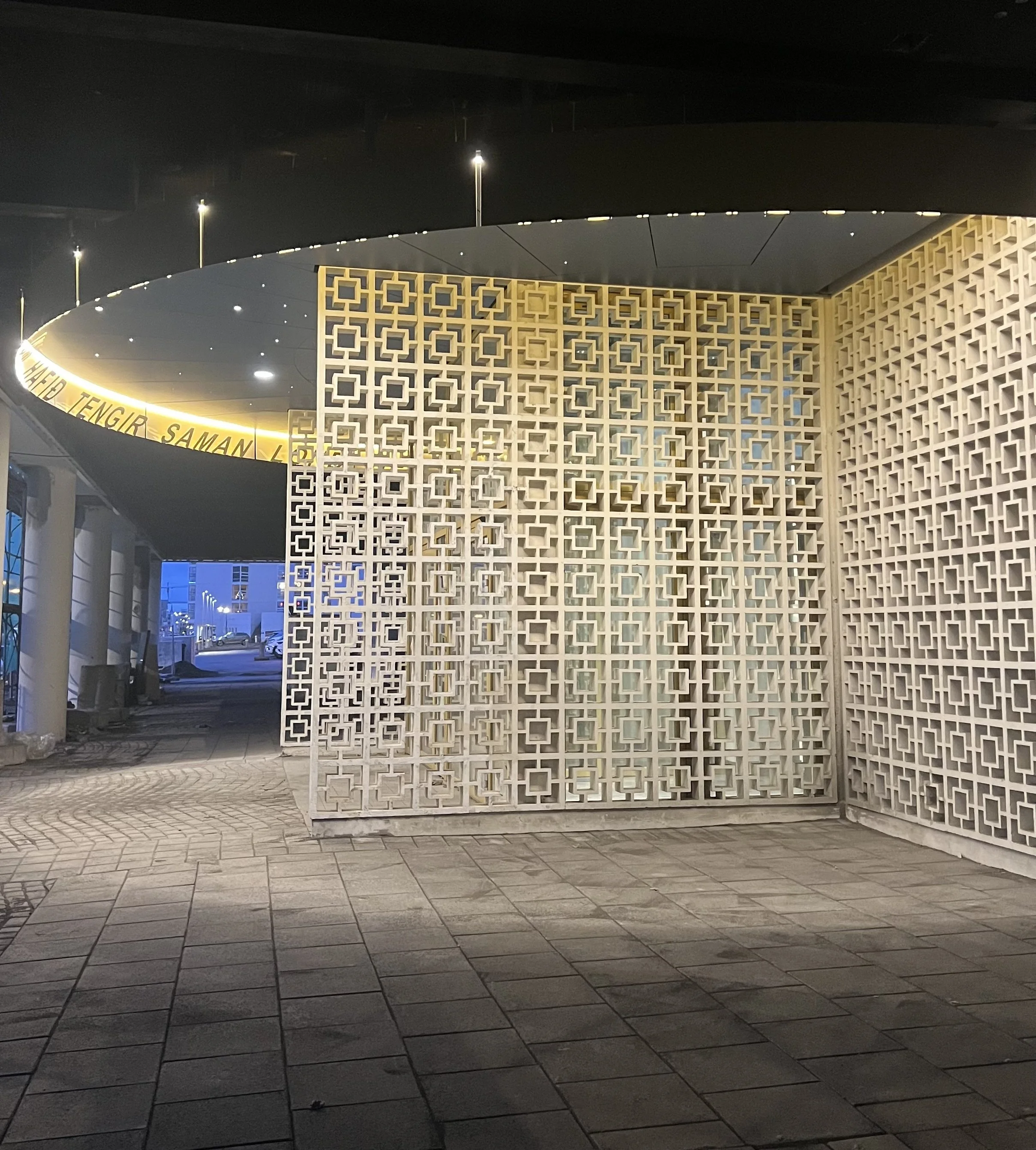 The artwork consists of a text work in brass and a Prussian blue sky containing the position of the stars over Reykjavík on 1 January 2061, on the 100th anniversary of the building. The text work comprises two independent sentences that are joined by the word Ocean (Hafið). Together, the sentences form a semicircle above the entrance to the building, with the words: Stars guide us home across THE OCEAN connects the countries of the world (Stjörnur varða vegi heim um HAFIÐ tengir saman lönd heimsins). Thus, the ocean finishes one sentence and begins the other. Both sentences are selected based on their connection to the history of Iceland and the building.